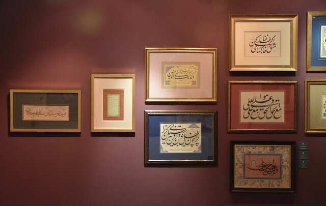 تالار بعدی اما متعلق به تابلوهای خوشنویسی و نگارگری است؛ جایی که خطوط گرد و منحنیِ خطاطی، چشمهای ما را نوازش میدهند و با لبهایمان شعر میخوانند. کمی جلوتر در یکی از ورودیهای این بخش، چند مجسمه همدیگر را تنگ در آغوش گرفتهاند و دروازهای را به سوی بخش تصویرسازی، کاریکاتور و کارتون باز میکنند.