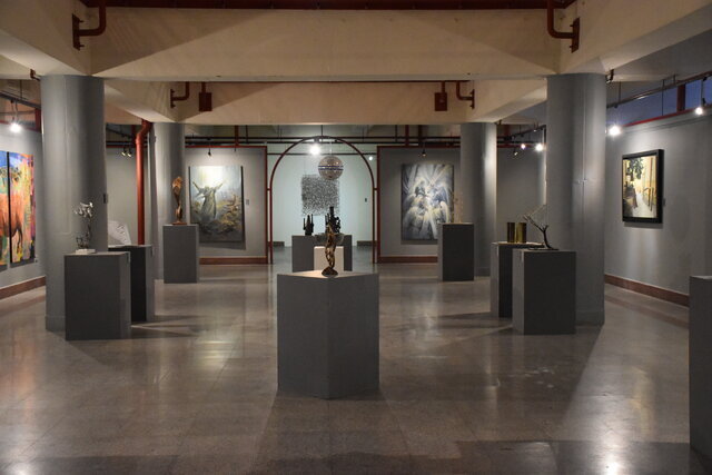 در تالار بعدی نقاشی ها و سازههای حجیم در هم آمیختهاند؛ میانۀ تالار مجسمهها با فاصله از یکدیگر چیده شده و نقاشیها دورشان حلقه زدهاند. تالار بعدی هم مانند تالار اول است با این تفاوت که چیدمانها تا حدودی به دستهبندیهای آرتیستیک اضافه شدهاند. نقاشیهای زیادی که اغلب با تکنیک رنگ و روغن و در ابعاد بزرگی کشیده شدهاند، روی دیوار خودی نشان میدهند. روی یکی از تابلوها، «خورشید» در حال انفجار است؛ همهچیز را در خودش ذوب میکند و از هُرم خود میسوزد. در دیگری، باد شدیدی در حالِ وزیدن است و قصد آن کرده که با تنگنظری، موها و پیراهنِ پیرمردِ نقاشیشده را با خود به دوردستها ببرد.